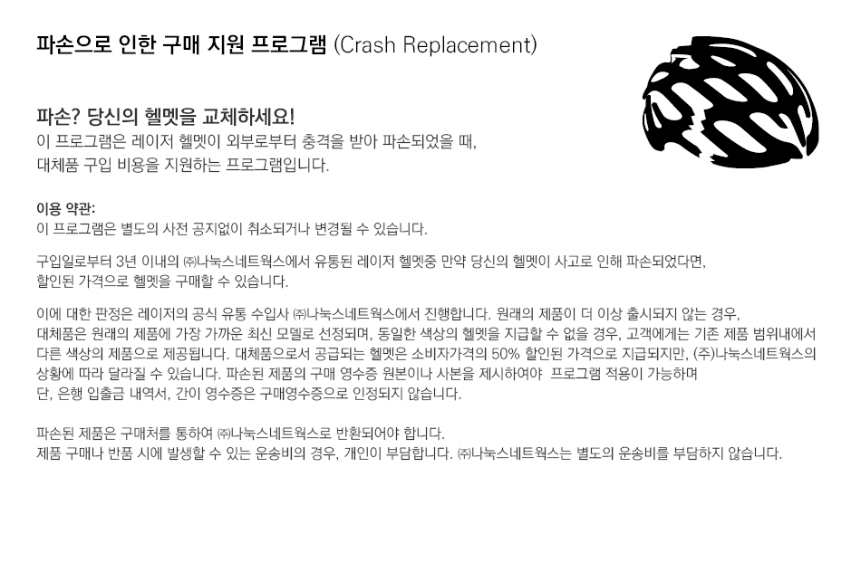 레이저 헬멧 파손시 구매 지원 프로그램 안내입니다. 아래 설명을 참고해주세요.