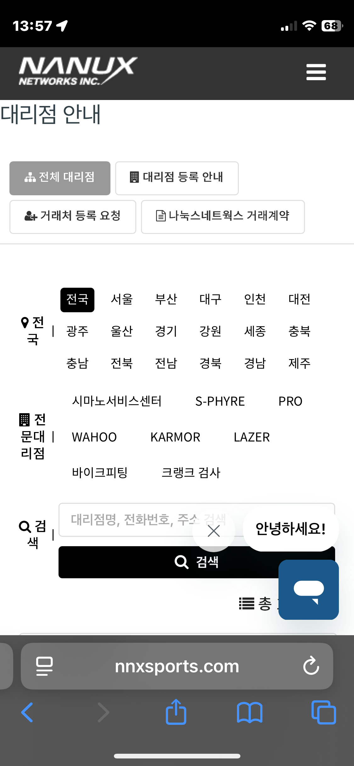 지역별, 전문대리점별로 상호명을 검색할 수 있습니다.