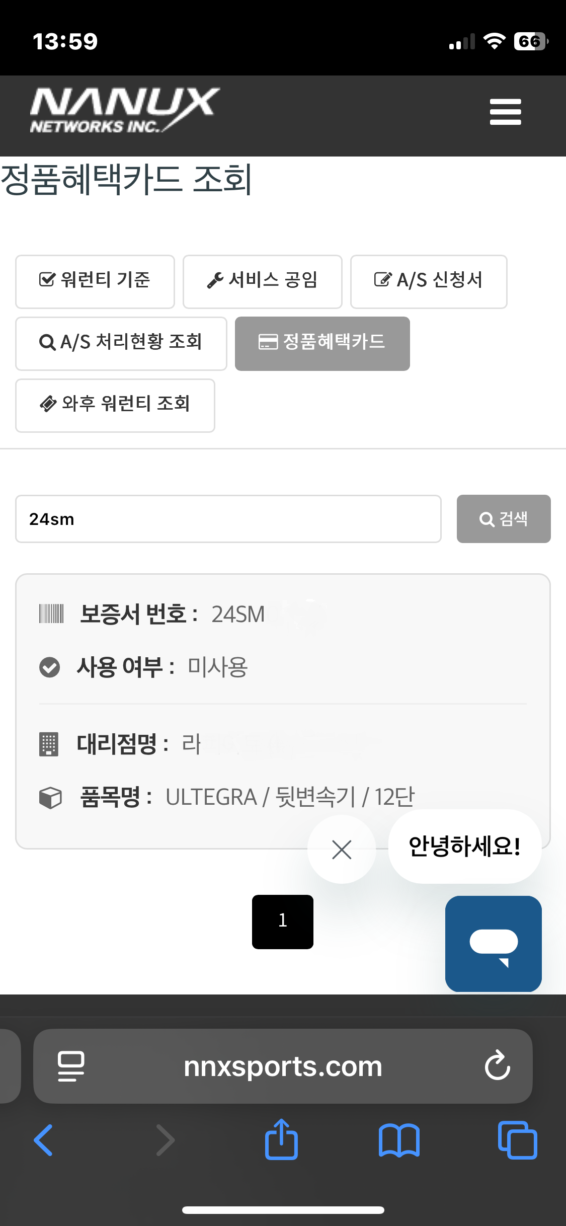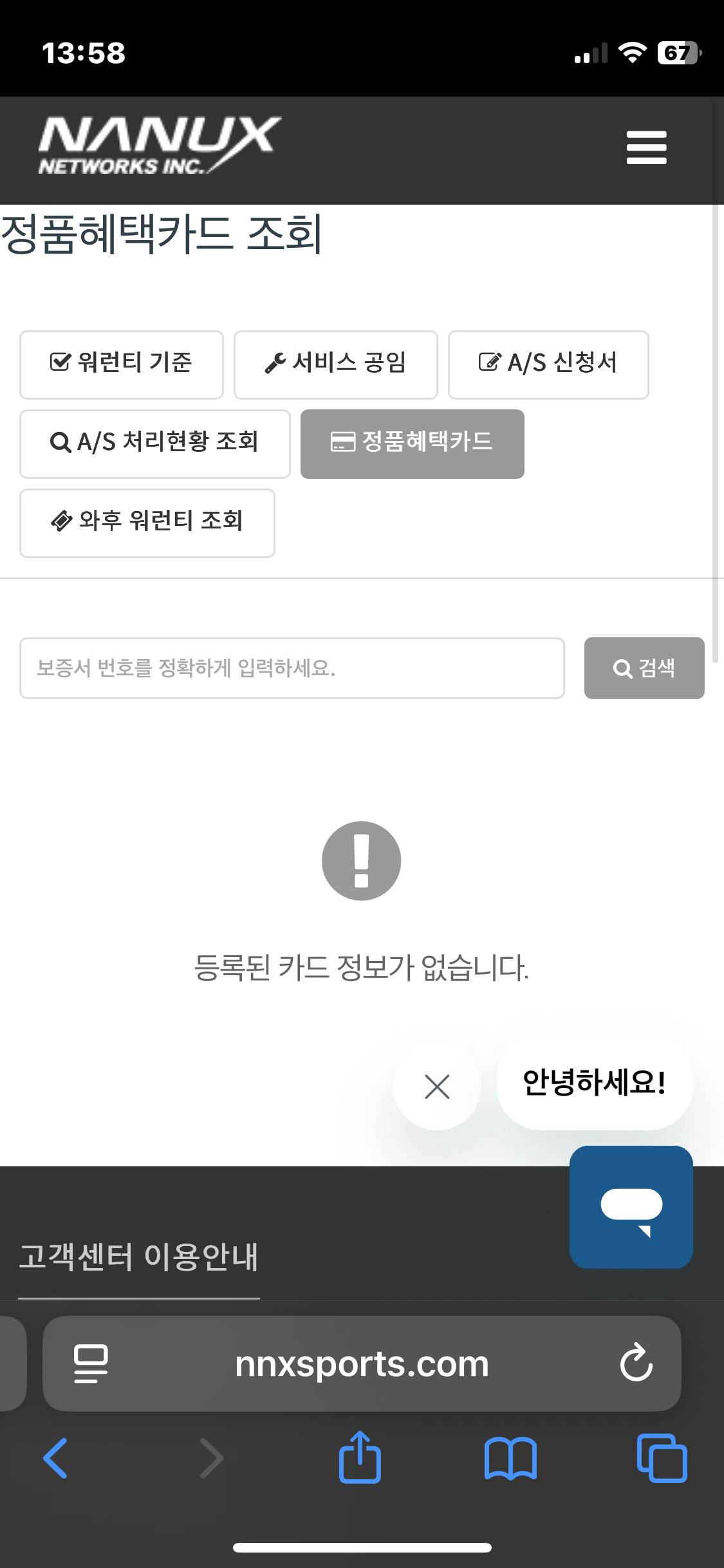 정품혜택카드 조회가 모바일 규격으로 가능하게 되었으며, 검색하면 사용여부 출고대리점 제품명 확인됩니다.