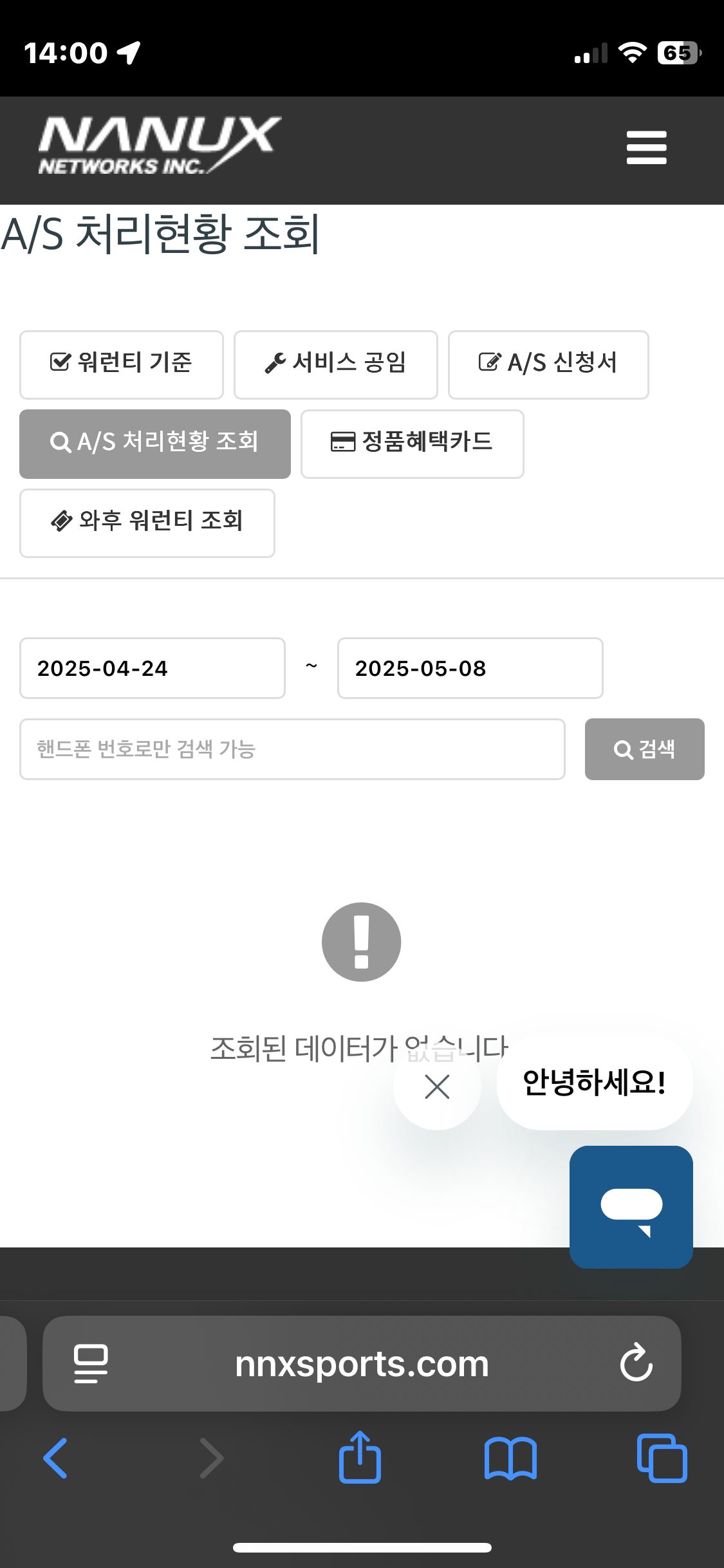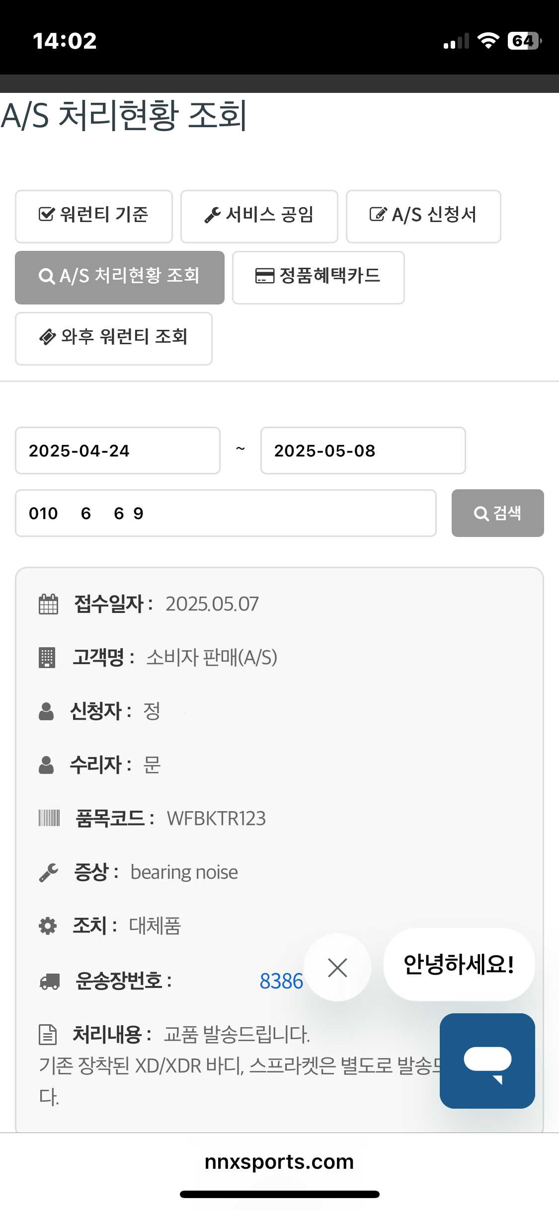AS처리현황조회 또한 모바일에서 접수하신 휴대폰 번호만 입력하면 간단하게 조회할 수 있게 되었습니다.