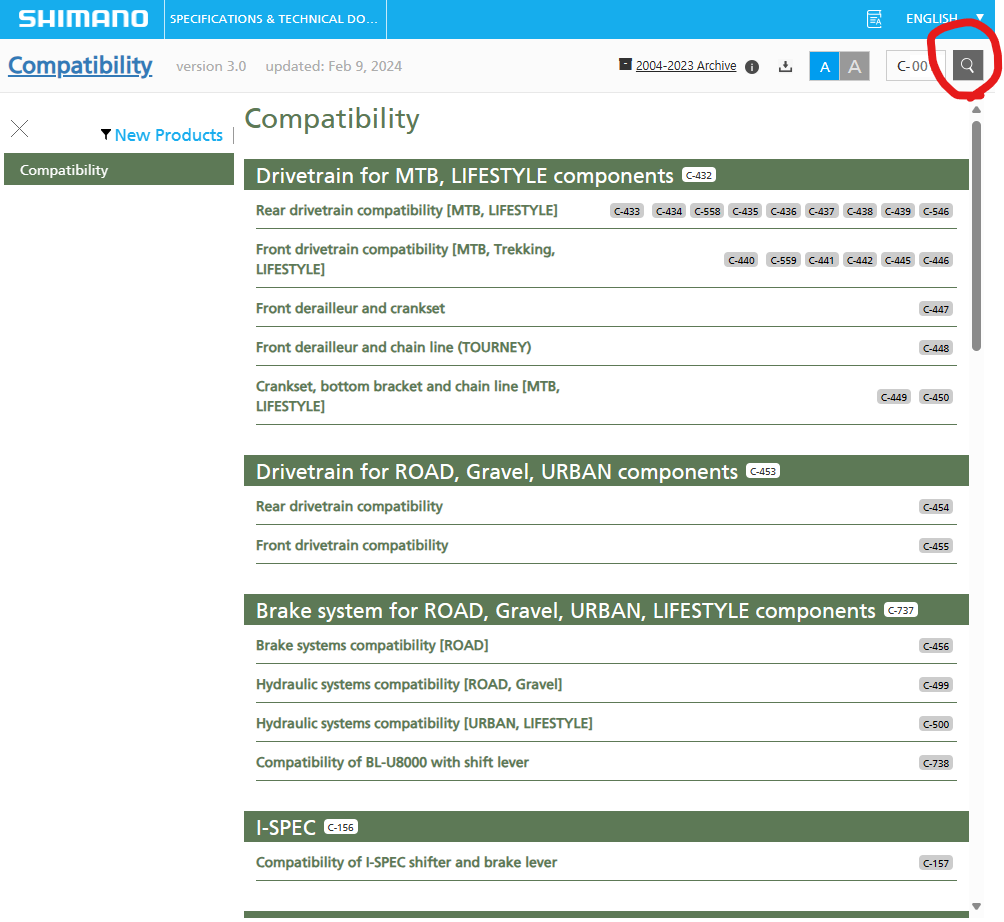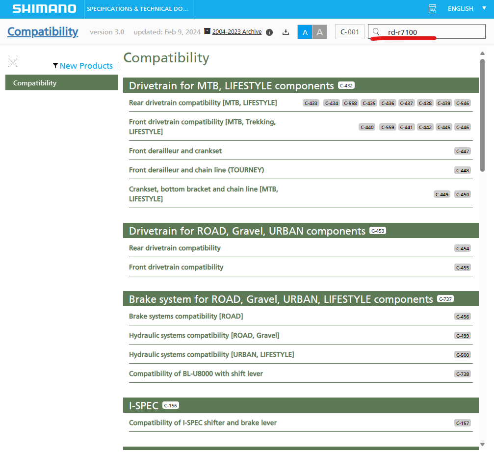 1. 호환차트 링크 접속(2023-2024 SHIMANO Product Information Web)