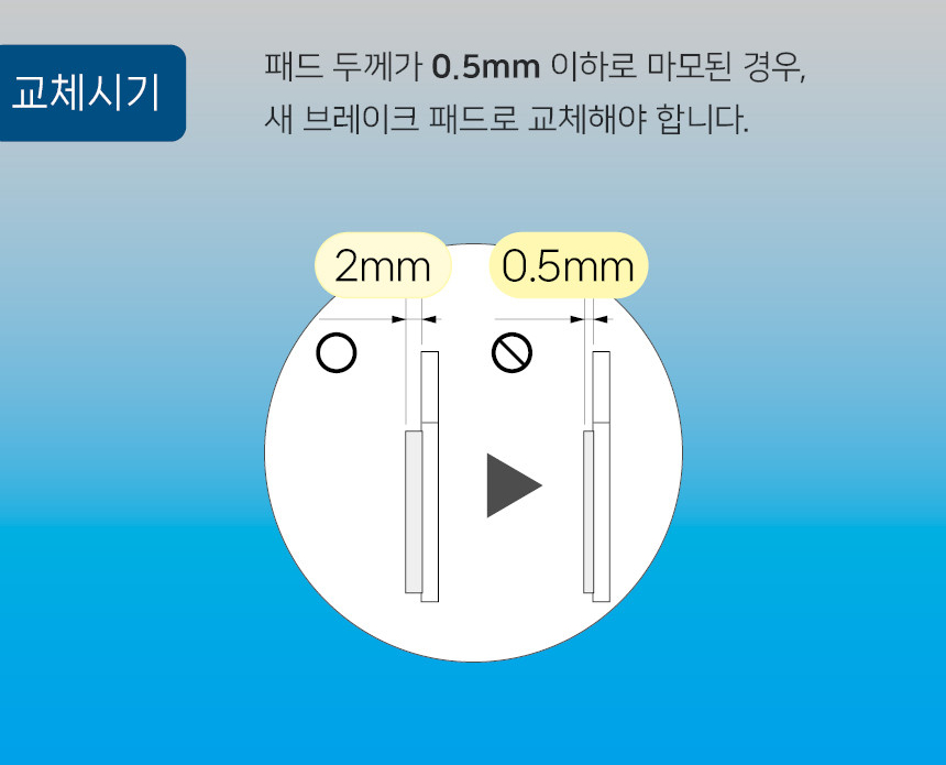 처음 구매할 때 브레이크 패드의 두께는 약 2.5mm