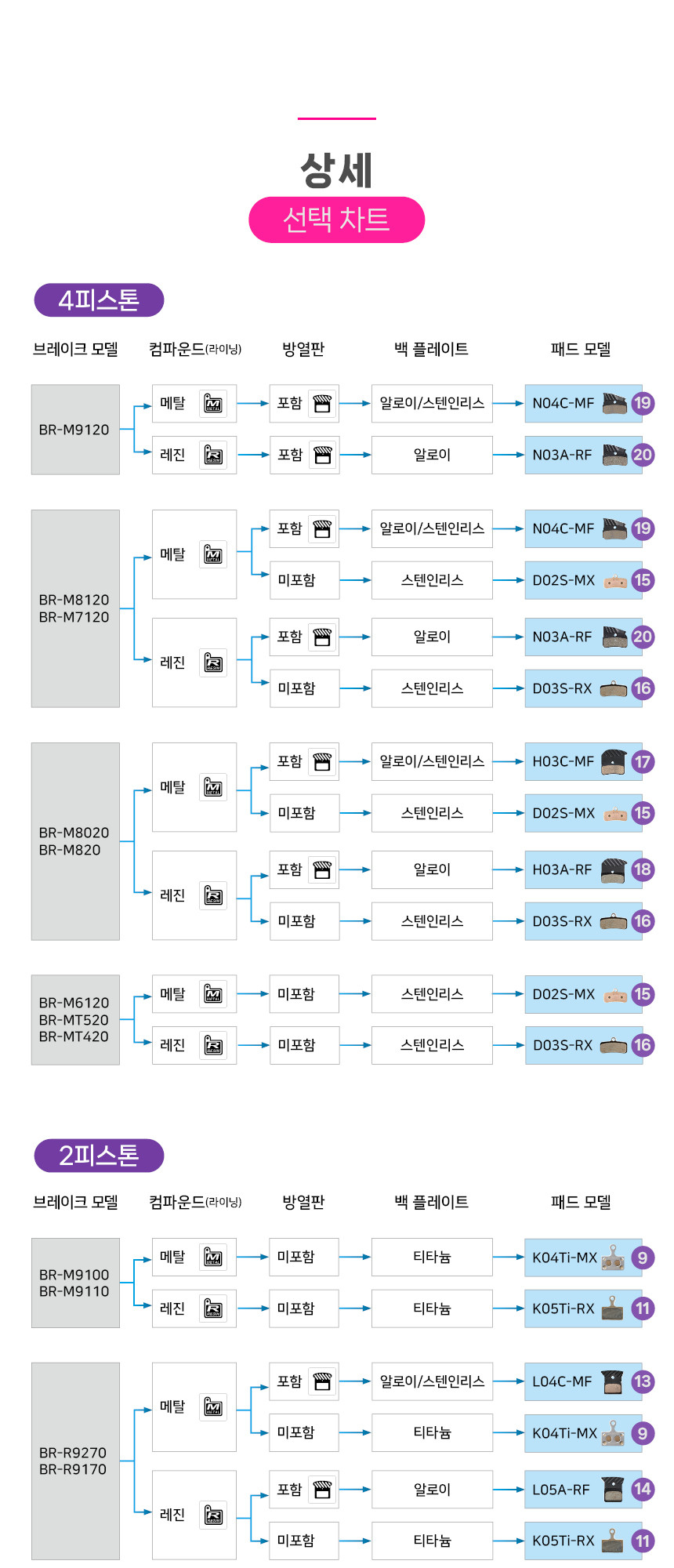 여기까지 찾을 브레이크를 고르셨다면, 다음은 컴파운드에 따른 선택도 해보셔야겠죠?