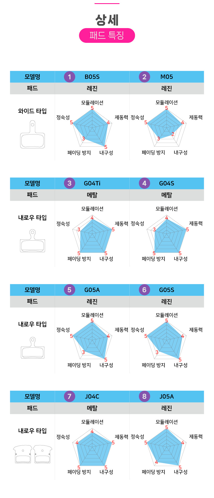 각 패드 들의 특성을 비교해 보면 다음과 같습니다!