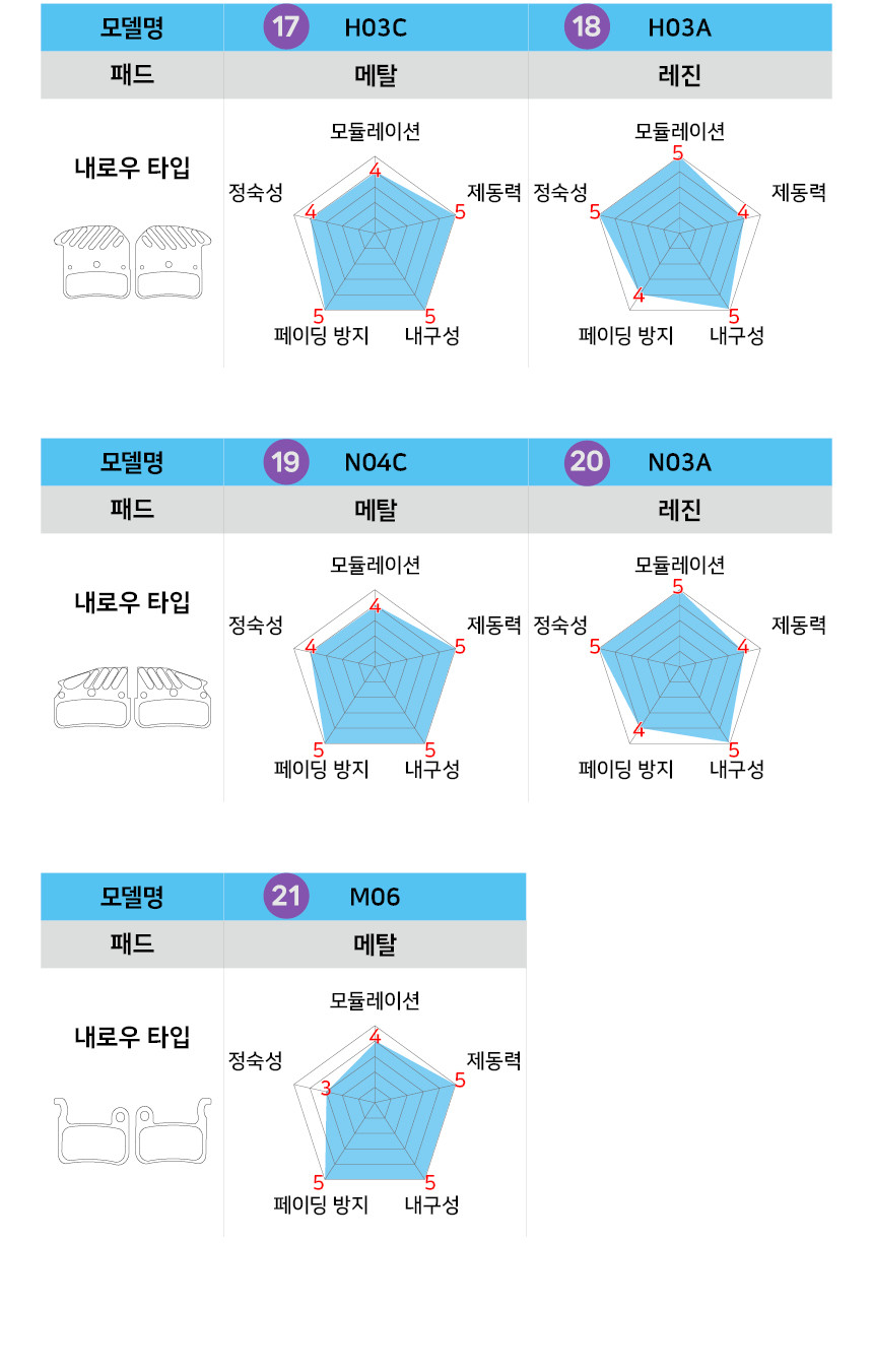 실제로 내구성이 강해서 자동차나, 오토바이에도 쓰이는 메탈 패드는 다양한 조건과 목적의 라이딩에서 그 역할을 충실하게 해내고 있습니다.