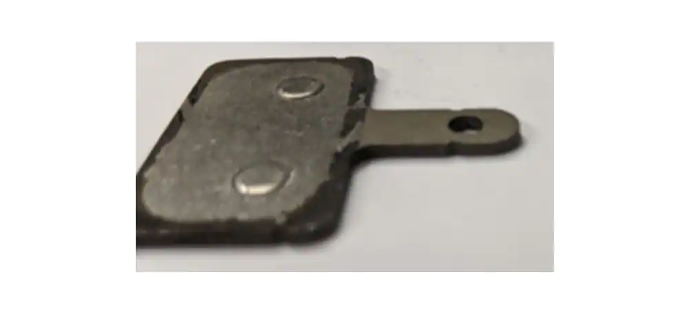단기간 사용에도 라이닝 부품이 떨어져 나간 위조 브레이크 패드