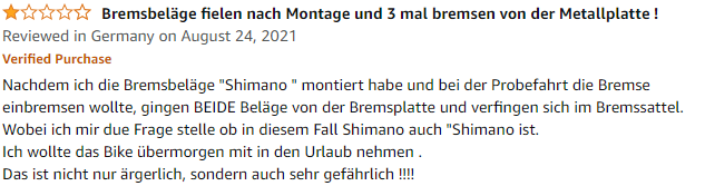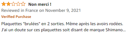 '단 2번의 외출만으로도 브레이크 패드가 완전히 소진되었습니다. 정품 시마노 브레이크 패드가 맞는지 의심되네요'