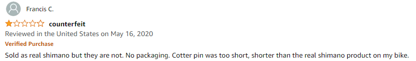 '시마노 정품이라고 했으나, 정품이 아닙니다. 포장도 없고요, 핀 이 너무 짧아서 제 자전거의 실제 시마노 제품보다 짧았습니다.'