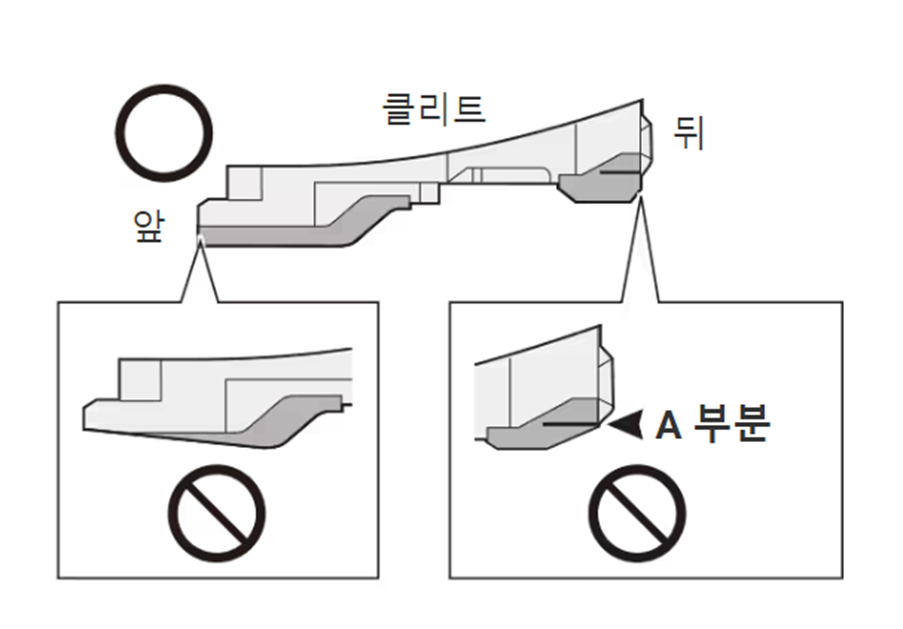 뒤쪽 A 부분까지 마모되었다면, 클리트를 교체하는 것이 좋습니다.