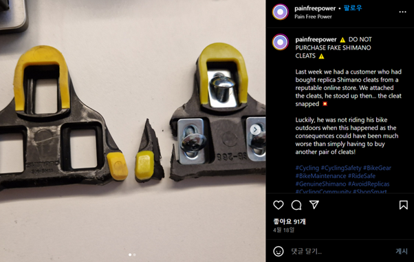 라이더 분들의 안전을 위협하는 가품 및 유사품 클리트는 국내외 온라인 마켓에서 쉽게 확인하실 수 있는데요,