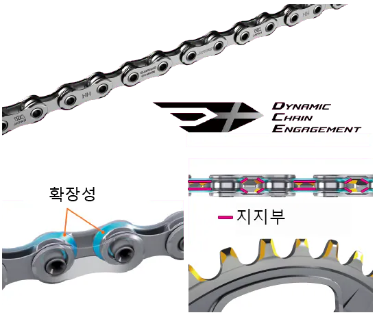 그리고, 내부 링크 플레이트가 확장되어 체인과 기어 톱니 사이의 연결이 더욱 단단해졌습니다.