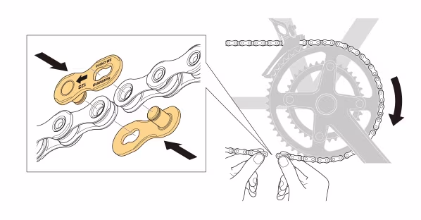 시마노 11단 12단 체인을 새로 구매하시면 함께 동봉되어 있는 퀵링크는 체인을 공구 없이 설치하도록 돕거나 기존의 방식대로 체인 플라이어를 이용해서 설치할 수 때도 쉽고 빠른 장착이 가능하게 합니다. 그리고 장착된 퀵링크는 체인의 다른 링크와 같이 체인의 일부가 되어 그 역할을 수행합니다.