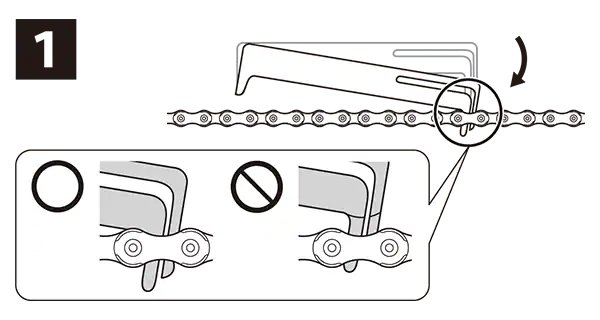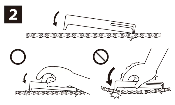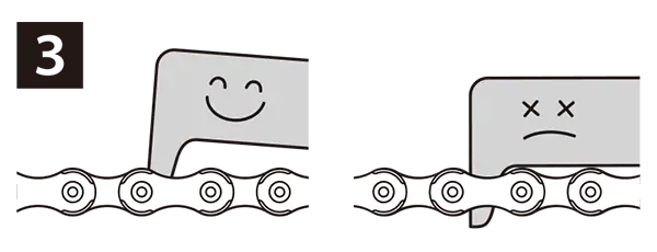 SHIMANO 체인 마모 표시기(TL-CN42)를 통해 체인 마모 상태를 독특한 방식으로 쉽고, 빠르고, 정확하게 점검할 수 있습니다. 점검자가 롤러를 같은 방향으로 유도하여 롤러와 롤러 링크 플레이트 사이에 간격이 없는 상태에서 체인 길이를 측정합니다.
