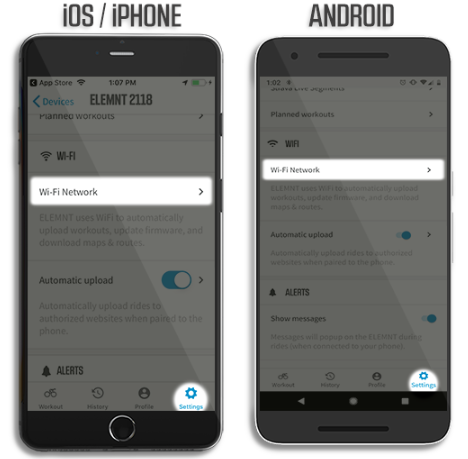 한 번 연결된 WIFI는 엘리먼트 장치에 저장되며 WIFI연결 범위 내에 있을 때 자동으로 연결됩니다. 자동 연결되는 WIFI범위 내에 있다면 엘리먼트 장치와 ELEMNT 앱의 연결이 끊긴 경우에도 라이딩 기록이 승인된 계정(예:Strava)에 자동 업로드가 전송됩니다.