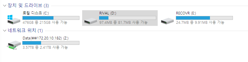 탐색기 -> 내 PC-> 장치 및 드라이브 섹션 -> RIVAL선택