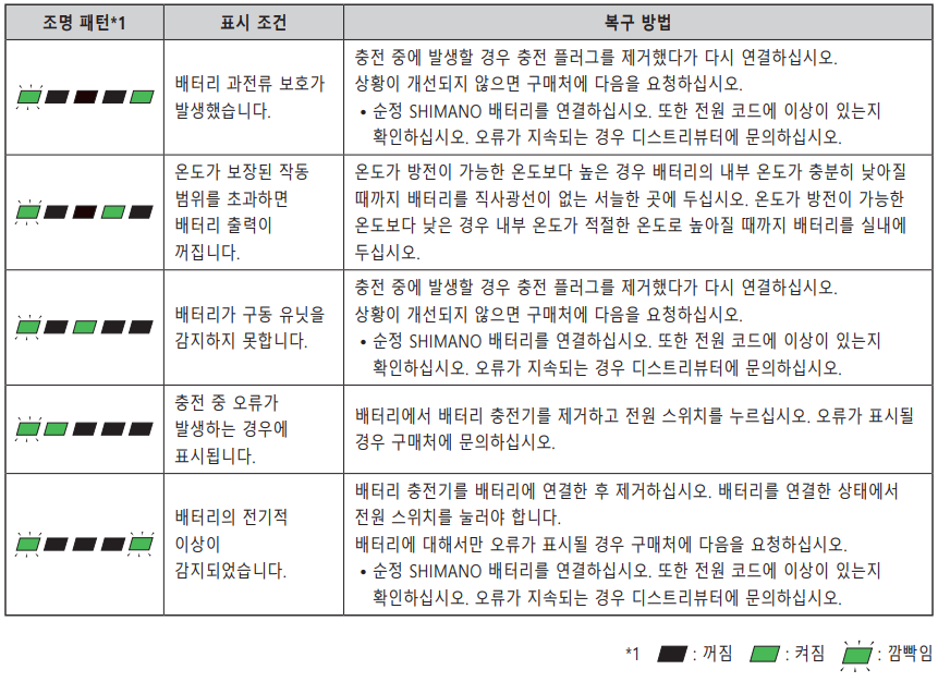 전기자전거 배터리 오류 코드 (LED 램프 5개인 배터리용)