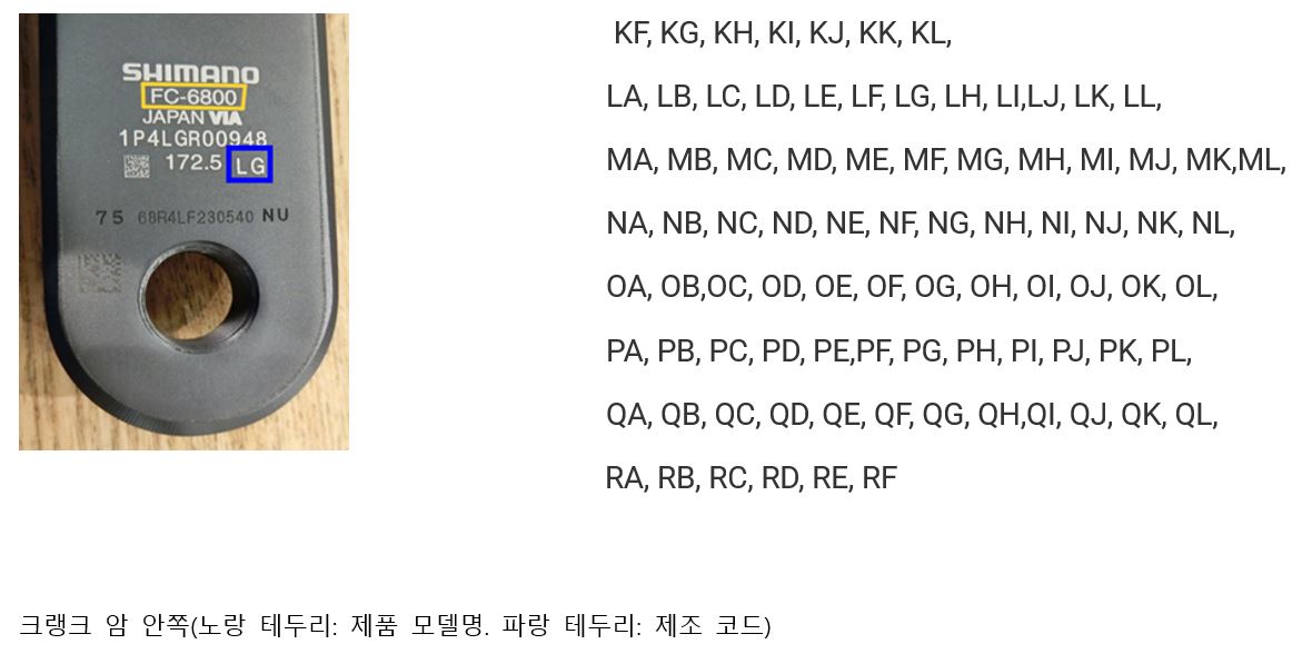 다음 두 글자의 생산 코드는 크랭크암 하단의 내부에 찍혀 있습니다.