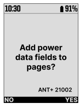 2. 파워미터 정보가 와후 장치의 데이터 디스플레이 화면(Data Field)에 표시되도록 설정을 구성 하십시오