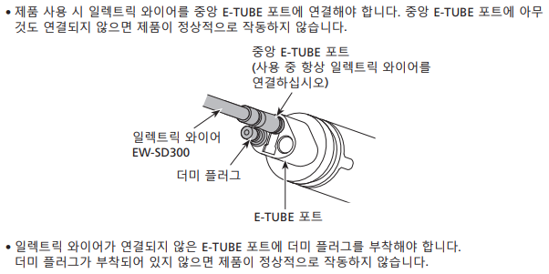 중앙 E-TUBE 포트는 빨간색으로 표시되어 있습니다. 이 포트에는 SD300 와이어가 반드시 연결되어 있어야 합니다.