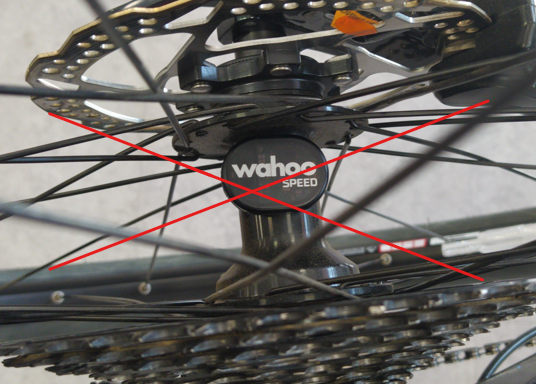 충분한 공간이 있을 경우에는 뒷 허브에 장착하여도 센서가 작동합니다만, 신호 방해 가능성을 줄이기 위해서는 가급적 사이클 컴퓨터와 가까운 앞 허브에 장착해 주십시오.