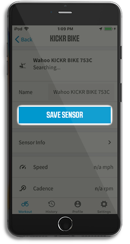 올바른 트레이너에 연결되었는지 확인 후 센서 저장을 선택 합니다.